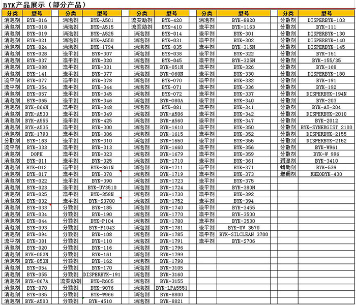 畢克化學(xué)的客戶包括涂料和印刷油墨,塑料,膠粘劑和密封膠以及清潔劑,地坪涂料和潤(rùn)滑劑的制造商。畢克助劑還成功用于建材化學(xué)品,石油和天然氣以及鑄造行業(yè)。